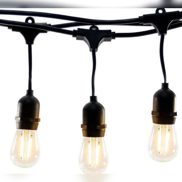 Note: Heavy Duty 48ft long string lights, 16 medium sockets. Connectable with 3ft spacing between bulbs. S14 Bulb is glass. 120.00 volts