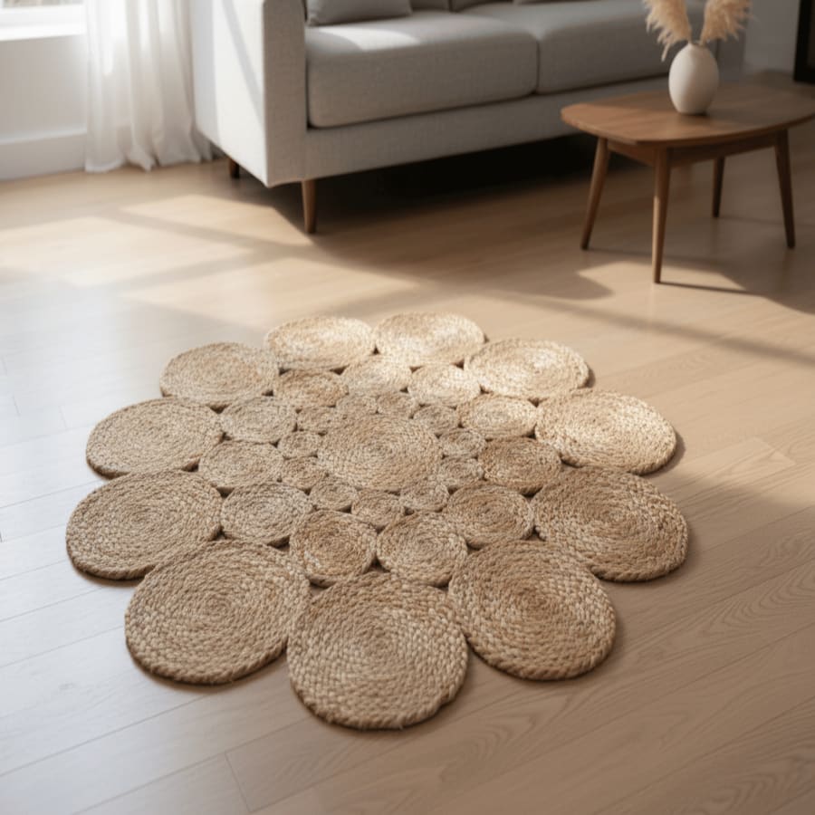3FT BRAIDED JUTE FLOWER SCALLOPED RUG