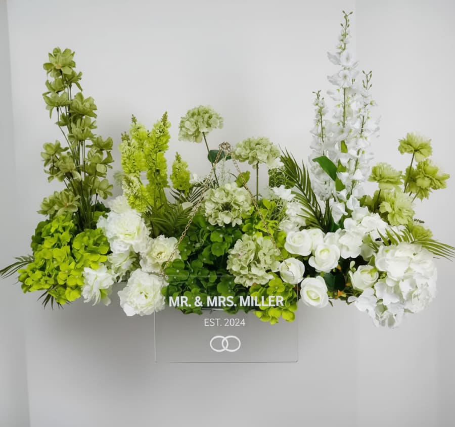 Color: Green & White Size: 39".37 W x 15.74"H Material: Silk Flower